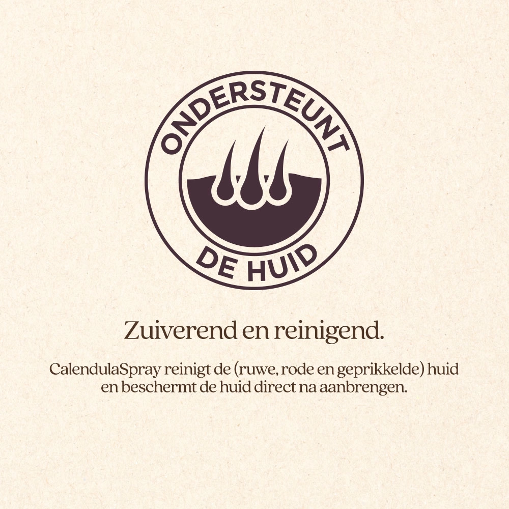 Het product bevat plantaardige stoffen, onder meer uit calendula bloesem, salviabladeren en hamamelis. Verzorgende bestanddelen: onder meer expanthenol (provitamine B). CalendulaSpray wordt geconserveerd met tijmolie.
