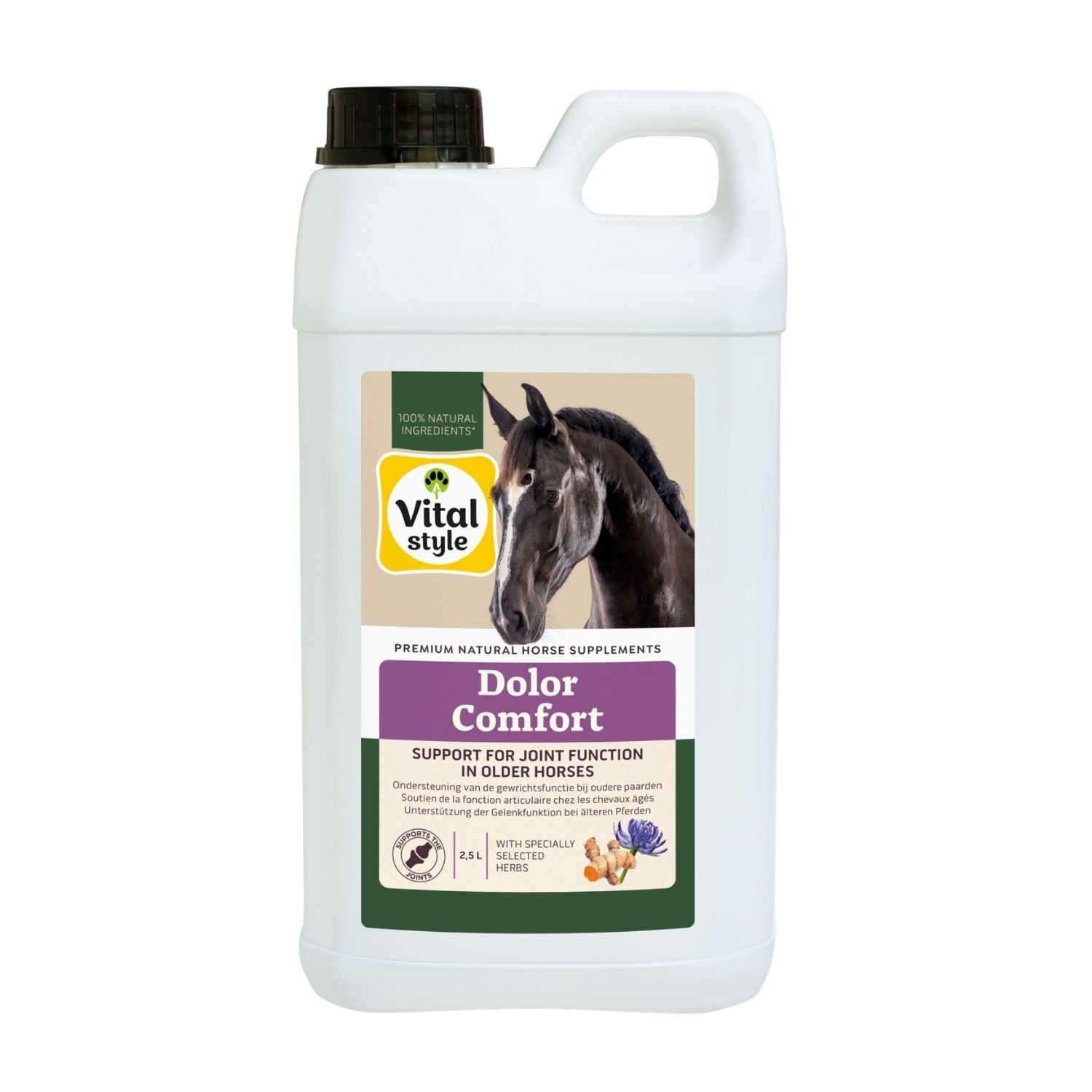 DolorComfort van VITALstyle (voorheen ECOstyle) geeft extra comfort en ondersteuning aan paarden die dit nodig hebben. Het welzijn van het paard blijft met DolorComfort ook in moeilijke tijden optimaal. DolorComfort ondersteunt een soepel bewegingsapparaat als bewegen (plotseling) moeilijk gaat. Het kan zowel voor korte als langdurige ondersteuning gegeven worden. DolorComfort is ook geschikt om juist oudere paarden een comfortabele oude dag te geven, als soepel bewegen niet vanzelfsprekend meer is.