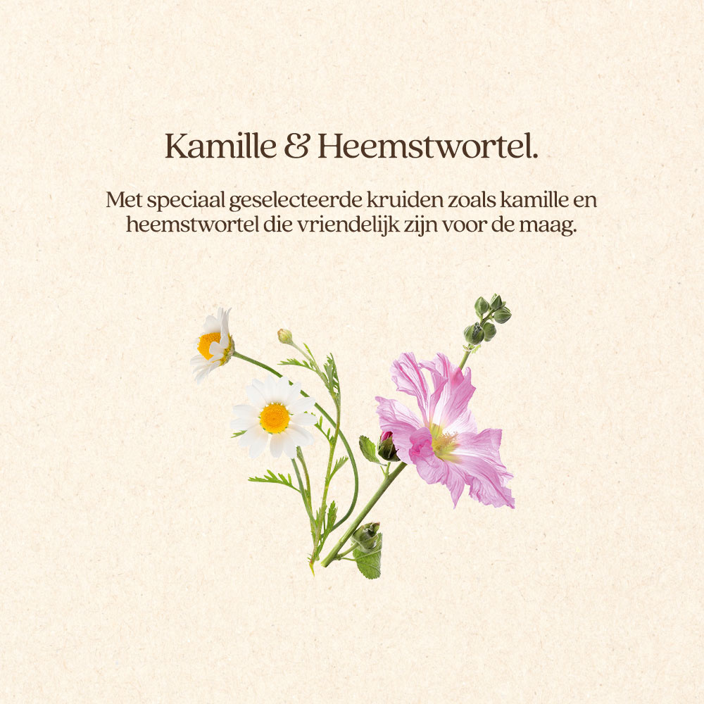 Sensoriële toevoegingsmiddelen: Mix van natuurlijke aromatische componenten: o.a. kamille en heemstwortel.