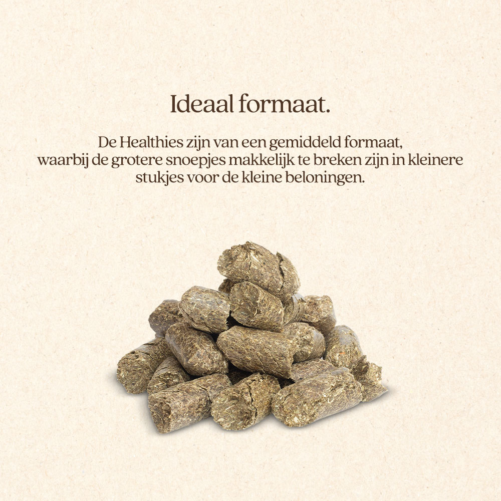 Healthies met Lijnzaad zijn gezonde en lekkere paardensnoepjes voor alle paarden en pony's. De snoepjes zijn graanvrij, bevatten weinig suiker en zetmeel en zijn verrijkt met specifieke kruiden.