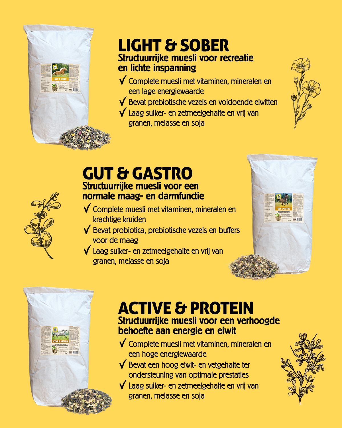 - Voor paarden die extra ondersteuning nodig hebben voor de maag en darmen