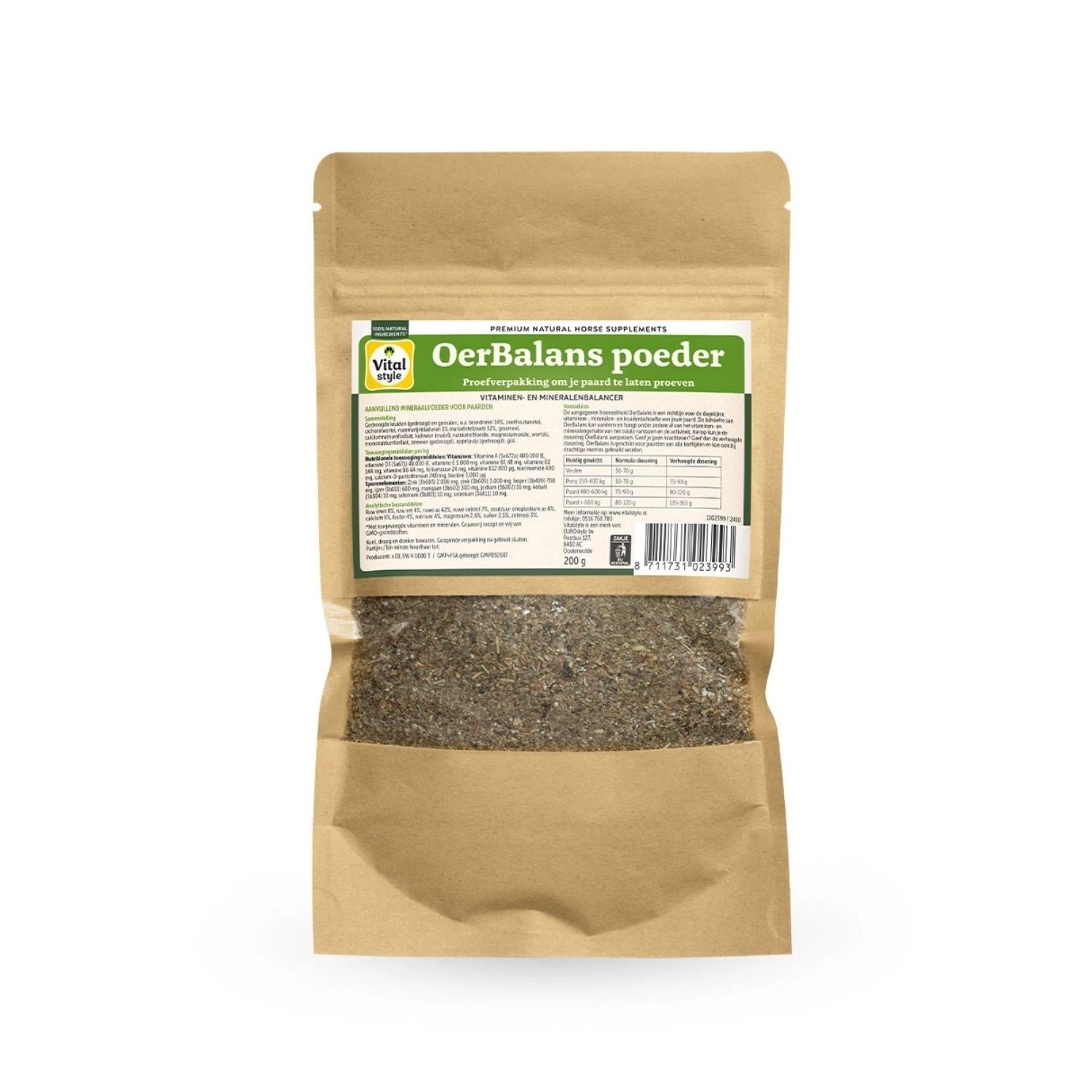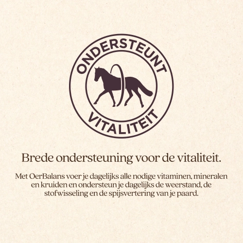 VITALstyle (voorheen ECOstyle) OerBalans is verkrijgbaar in brok en poedervorm. Je geeft gemiddeld 80 gram per dag. Hiermee geef je je paard de onmisbare vitaminen, mineralen én kruiden. Het bevat alles wat een paard van nature nodig heeft.